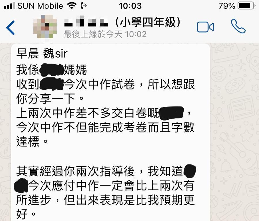 家長:「在學習啟航號的第2、3堂後,我便看到他的改變。在你那裡,他尋回了自信–比任何成績、數字都寶貴的自信。這亦打破了他一直以來對補習社的負面印像。」