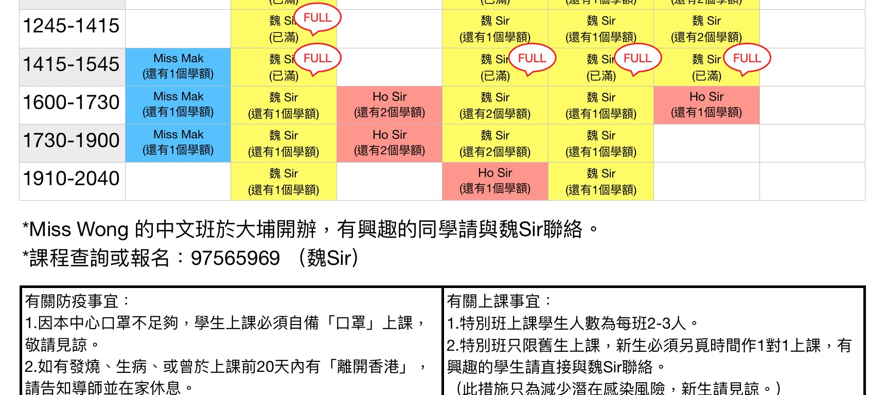 各種課程教育局停課期間特別課堂 「無法上課便不能學習?」No!!!學習啟航號的自學訓練課程,正好協助學生在停課時間自我學習、增進知識。 機會難得,立即找我們報名。 WhatsApp : 97565969 (魏Sir) 學費: 魏 Sir:小學$275@堂;中學$335@堂 Miss Mak:小學$275@堂 Ho Sir:小學$275@堂;中學$335堂 Miss Wong:小學$275@堂;中學$335堂 分享此文: 按一下即可分享至 X(在新視窗中開啟) X 按一下以分享至 Facebook(在新視窗中開啟) Facebook 喜歡 正在載入... 相關